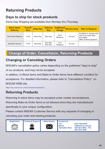 MISUMI's cancellation policy varies depending on the published "days to ship"