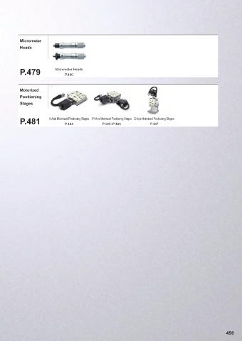 Micrometer Heads P.479 Micrometer Heads P.480 Motorized Positioning Stages P.481 X-Axis Motorized Positioning Stages XY-Axis Motorized Positioning Stages Z-Axis Motorized Positioning Stages P.487 P.485~P.486 P.484 456